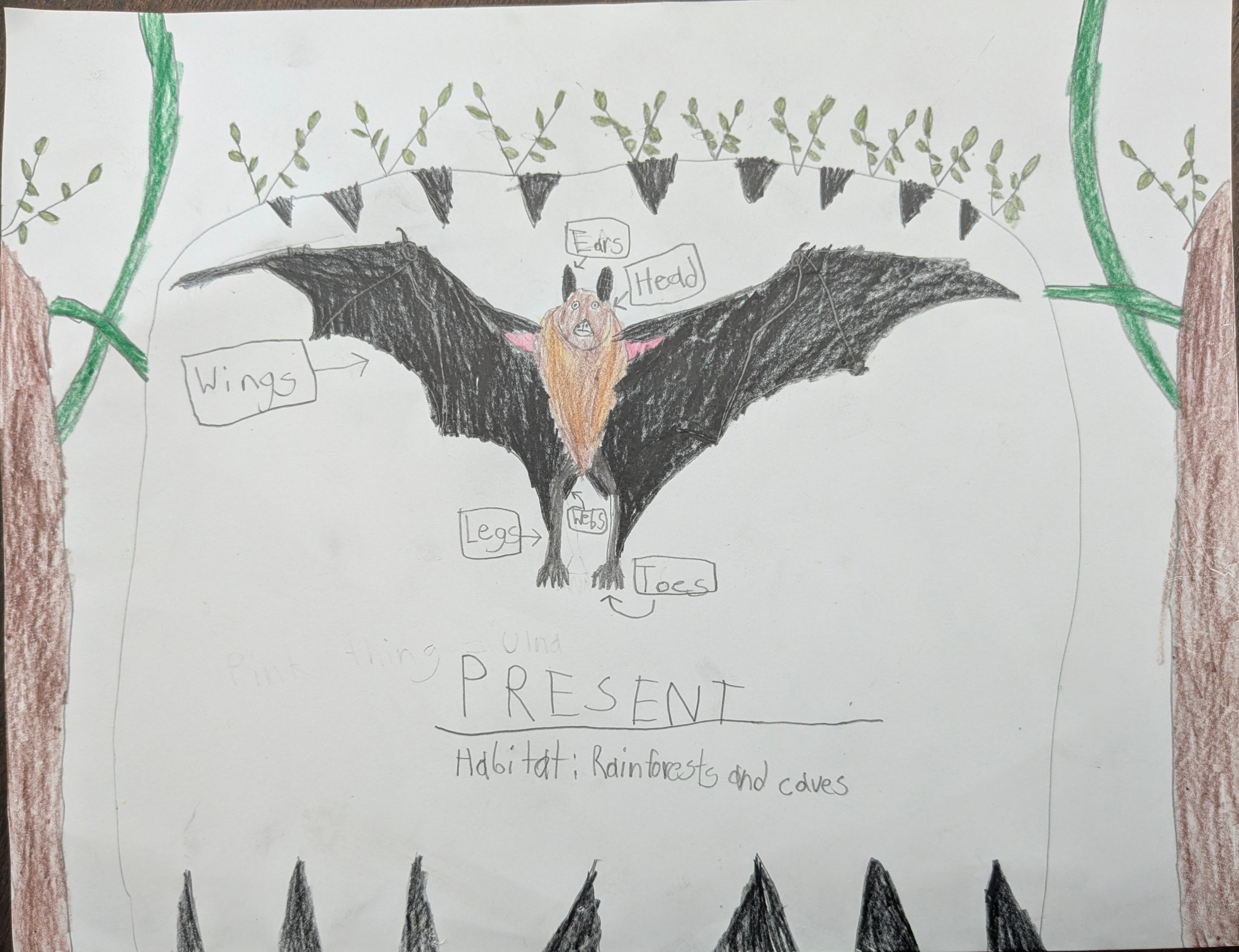 I think that in the future, vampire bats’ habitats and environments would be a lot warmer. There would be a lot of climate change and a lot of animals would go extinct, including the animals that vampire bats drink blood from, including cows, pigs, horses, and birds. Then, the vampire bat would either go extinct too, or make adaptations to survive in the much warmer weather. The adaptations could include changing food sources, and even though vampire bats have big ears to shade their faces, their ears might get even bigger to vent out heat and shade themselves. Another adaptation could be webs like a spider’s. The bigger animals that are less likely to get caught in webs would probably go extinct, so vampire bats would switch to eating mosquitos. That might also mean vampire bats might be a little bit smaller. It might be called the Big-Eared Weaver Bat.