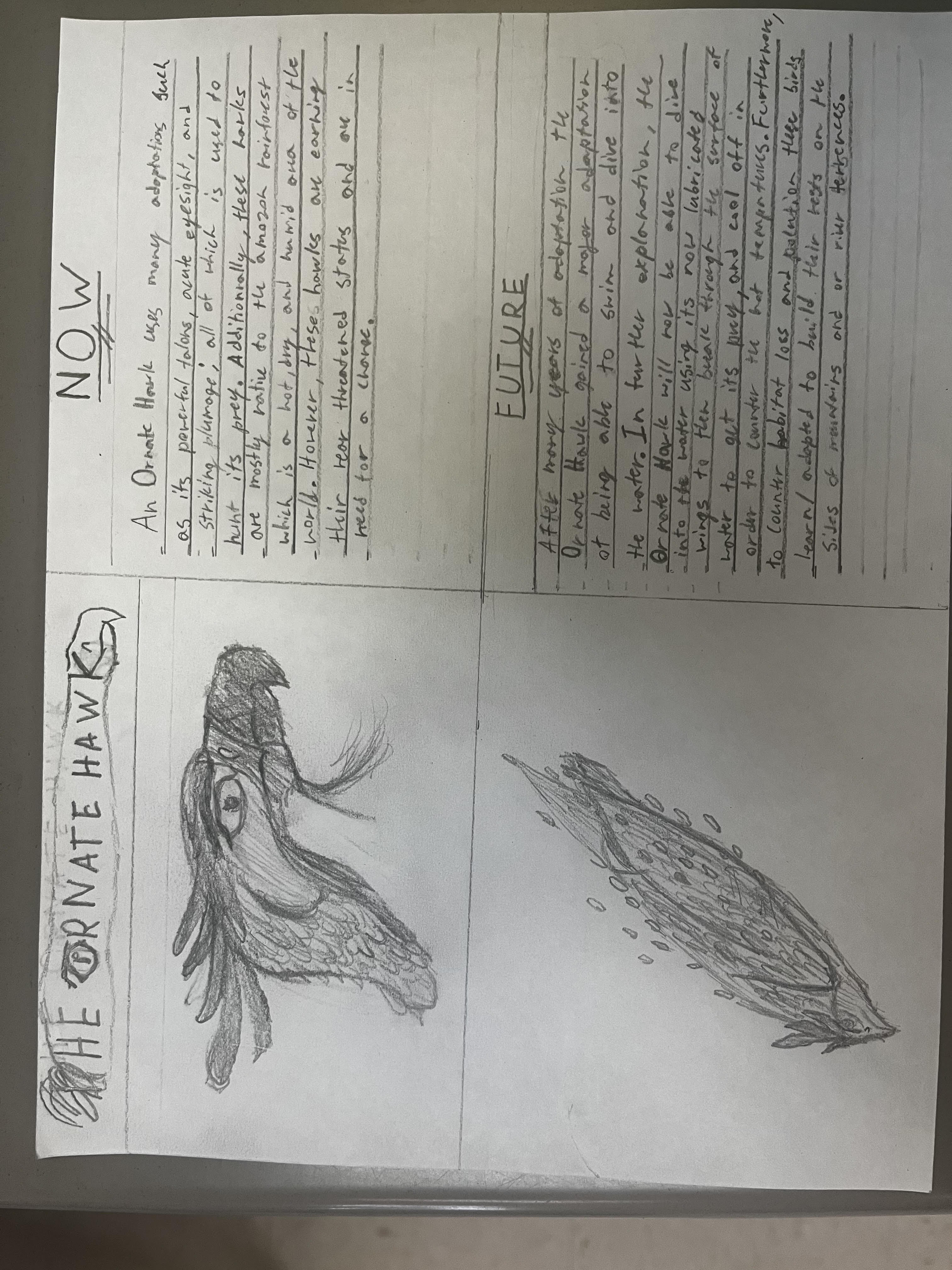 This is the Ornate hawk, a presice apex predator of the Amazon rainforest that feeds off of fish and other small animals with its eyes and talons. Look and see the evolution of this bird who is going through many upcoming problems that are going change its abilities.