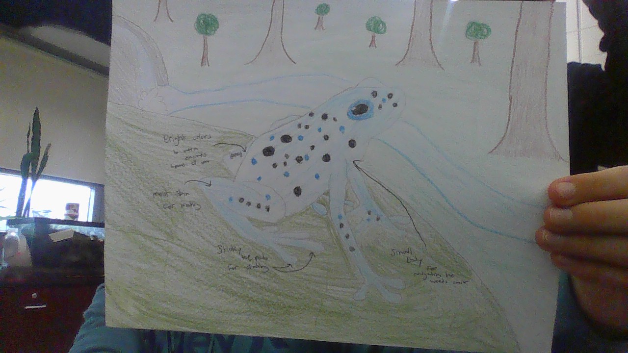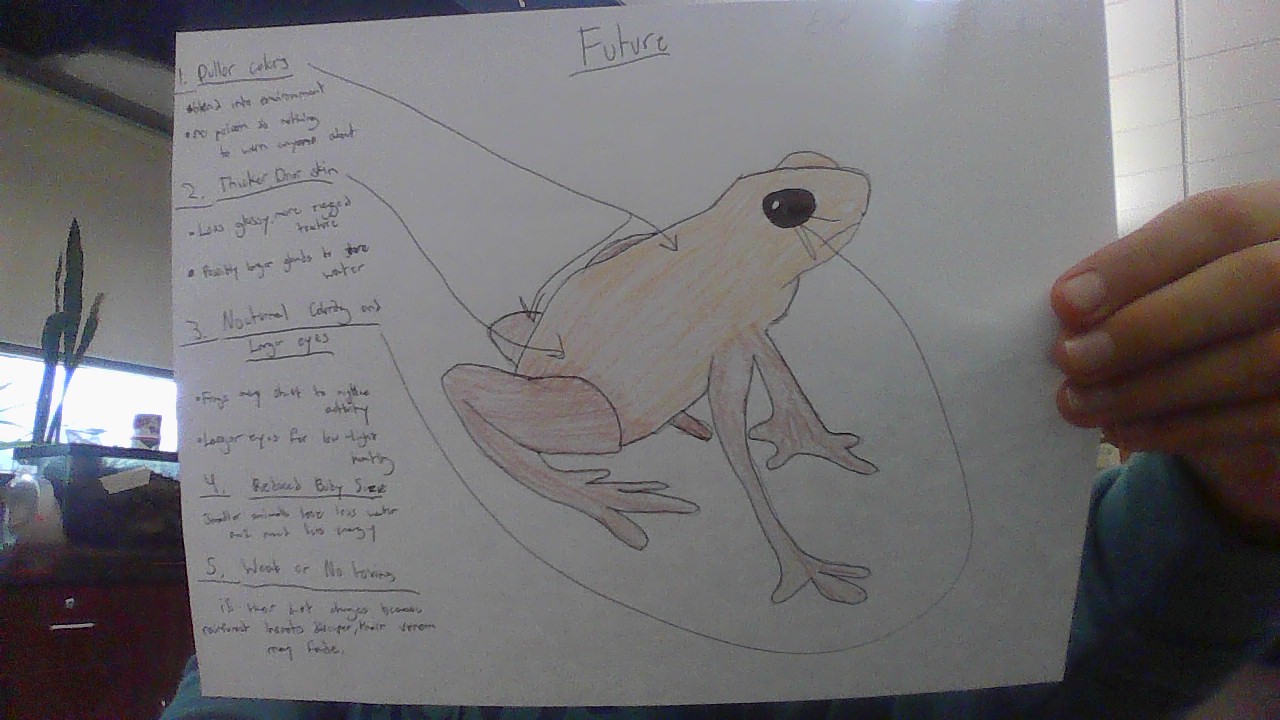 The blue poisonous dart frog, found in the rainforests of Suriname, is known for its bright blue skin and strong poison. Its colorful body warns predators not to eat it, and its sticky toes help it climb wet leaves and trees. It lives in warm, humid areas where it can easily find insects. Climate change is threatening the frog’s rainforest home. Hotter temperatures and less rain can dry out the forest floor and reduce insect populations. Deforestation destroys the shady, damp spots the frogs need to survive and lay their eggs. In the future, the blue poison dart frog may develop new ways to survive. It might grow thicker skin to retain moisture or become more active at night when it’s cooler. The frog could also change its diet or breeding habits to cope with a warmer, drier, and more unpredictable rainforest environment.