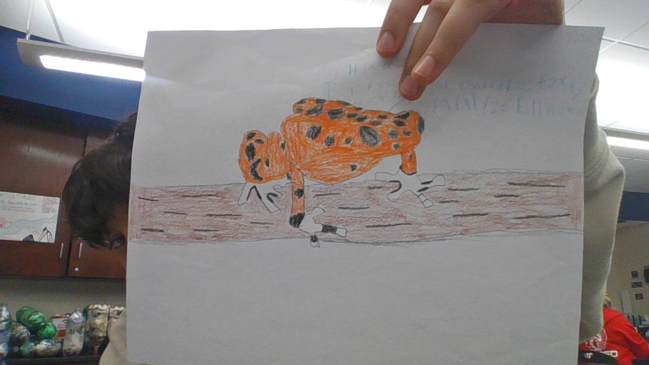 it is like a frog with a weird pattern and a orange on it
