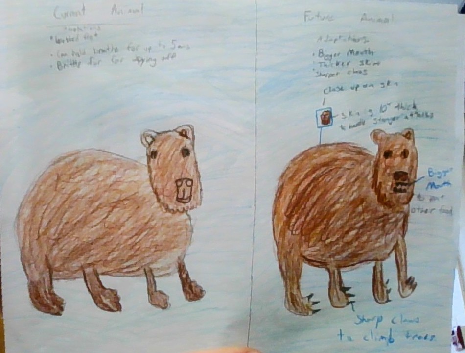 Capybaras are suffering from deforestation causing the water they live in to evaporate. This is causing them to lose their food and homes in the water. Even though they can go on land, the capybara uses their sharp teeth to eat aquatic vegetation, which will die if water continues to evaporate. Some adaptations that might be acquired by capybaras are bigger mouths to eat bigger animals for food, and thicker skin to outlast other creatures attacks. Another adaptation that would help the capybara would be clawed feet to help them climb trees. This will allow the capybara to change from a mostly aquatic creature to being efficient on land and surviving in the new areas, like trees in the jungle that will last a long time even with deforestation. If the capybara gains more of these adaptations they will be able to last a lot longer through climate change.