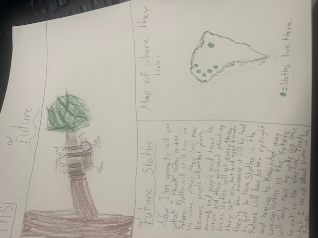 In the future, I believe sloths will develop much stronger arms and legs to stay safely in the treetops. They will grow longer, brownish-gray fur without the cracks that allow algae to grow. To better spot danger, they will evolve much sharper eyesight and hearing. These future sloths will become expert sleepers, waking up only once a day to snack on leaves. These changes will help sloths stay protected and healthy in their forest homes for years to come.