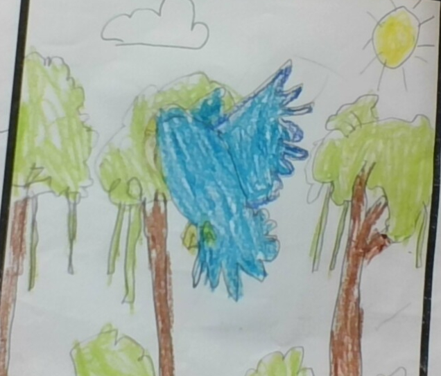 The parrots later in 10,00 years from now so the parrot is going to have red. It's going to be more females then males. The rain Forest is going to be a mud land. the parrots are going to 1x bigger