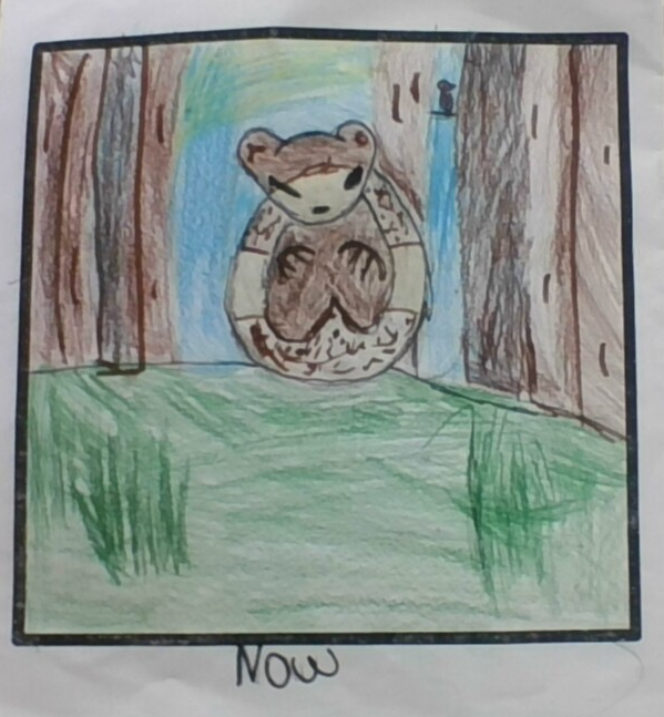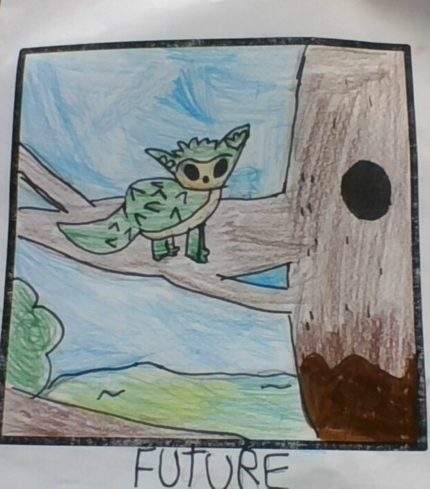 after 1000 years my rain forest animal has changed because too much animals hunted it and now it camouflages to hide, it lives in the trees too. because the rain forest flooded from the rain my armadillo turned green too. also the trees fell.