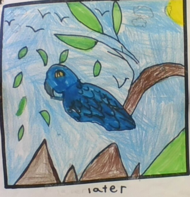 macaw eats fruit, nuts, flowers, and vegetation varied rain forest food like nuts, seeds, fruits berries leaves and flowers, using their powerful breaks to crack tough shells, with some also eating insects , clay for detoxification and nectar they sit on a tall stick in the tree . and they have a strong bite they are very kind . they could talk. they live on top not bottom the rain forest has a lot of animals like macaw, owl, armadillo and a parrot