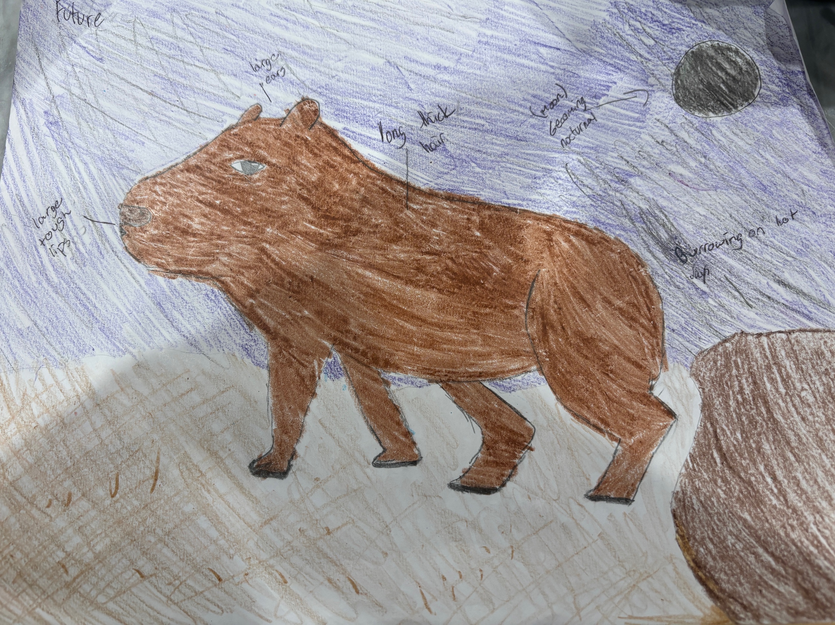 Capybaras will have to evolve from their old home and adapt to their new habitat, the savana in over 1 million years. First, capybaras will have to develop thick skin to walk on hot grounds without burning their feet. They will also have to grow large, tough lips to eat any prickly plants. Capybaras will stay in burrows during hot days, sleeping most of the time because they will have to be nocturnal to hunt when it's cold. They will have to adapt large ears to hear any approaching predators. Capybaras will have to experience difficult changes to adapt to their new, hot environment.