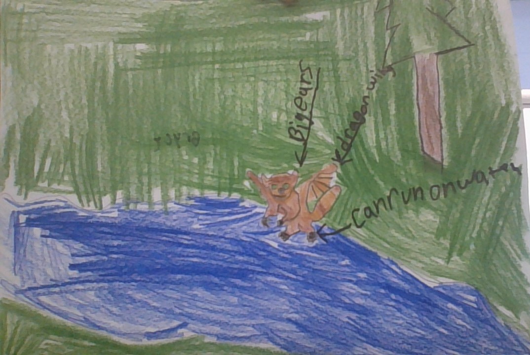 A tarsier with wings that can run on water like a basilisk with big ears and green eyes.