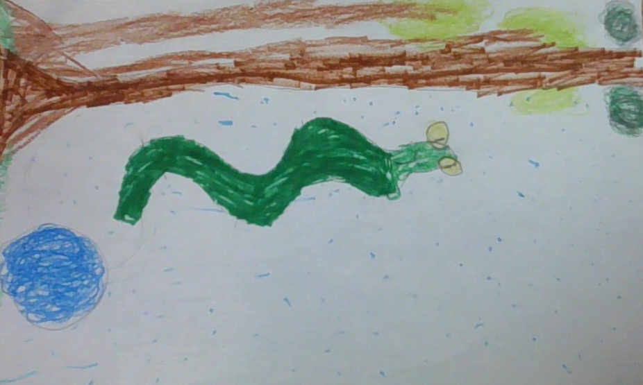 The new name of my creature is the black anaconda. The color is actually gray. It now Weighs up to 1000 pounds it has Big hard scales it also Has a red spikey ball at the end of its tail. It spits paralysing venom when it is scared, it can also go 5 years without food. Can be under water four 4 hours to escape hunters