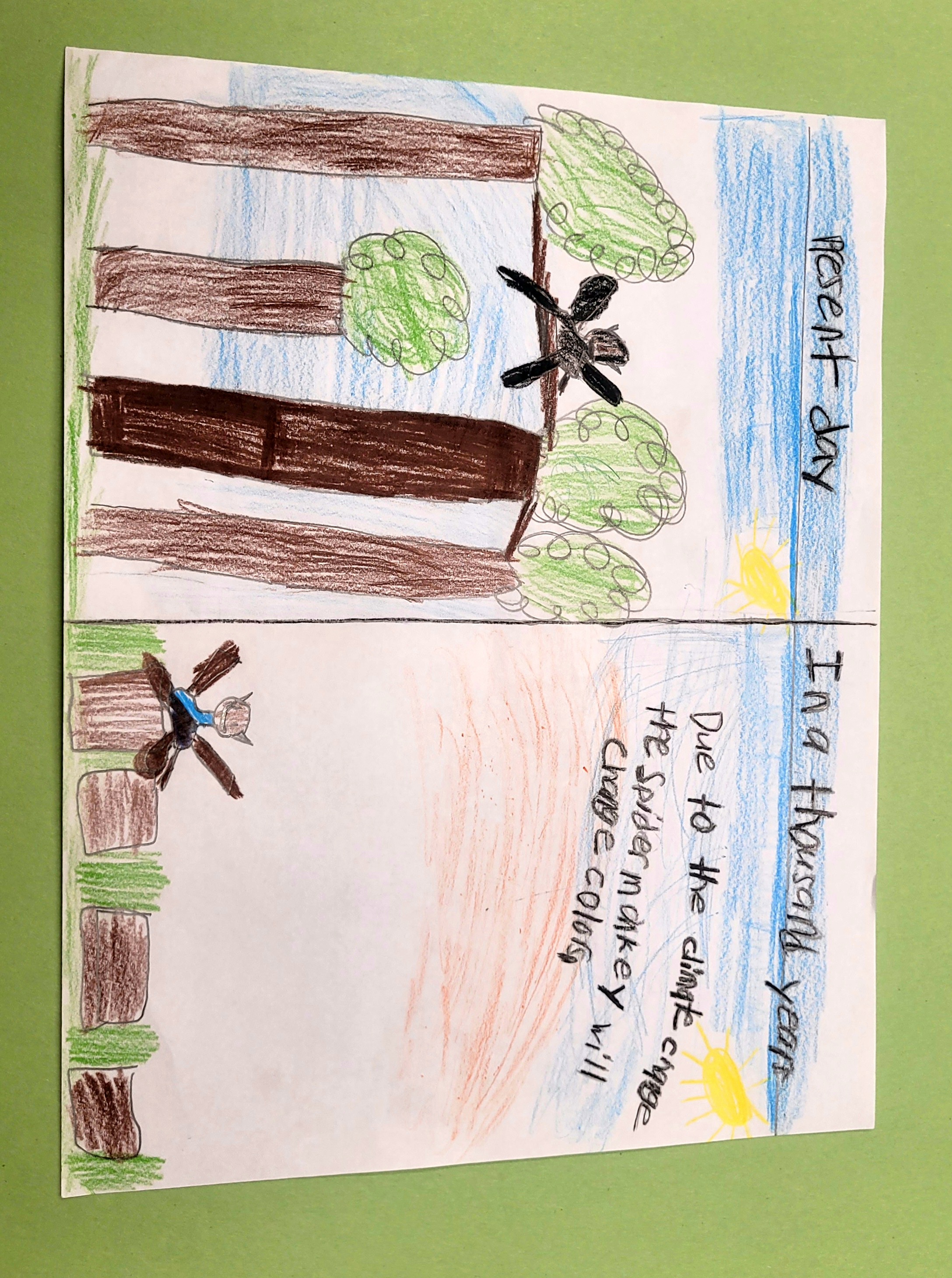 In a thousand years their habitat will change due to people cutting down trees, climate change, and habitat loss. In a thousand years they won't need flexible feet to help them grab branch to branch because there won't be a lot of trees in the wooden area. But they will still need to have webbed feet so they can swim. But they will start eating differently due to climate change and habitat loss. The things that spider monkeys eat will stop growing. It would eat only spiders, mammals, and fruit.