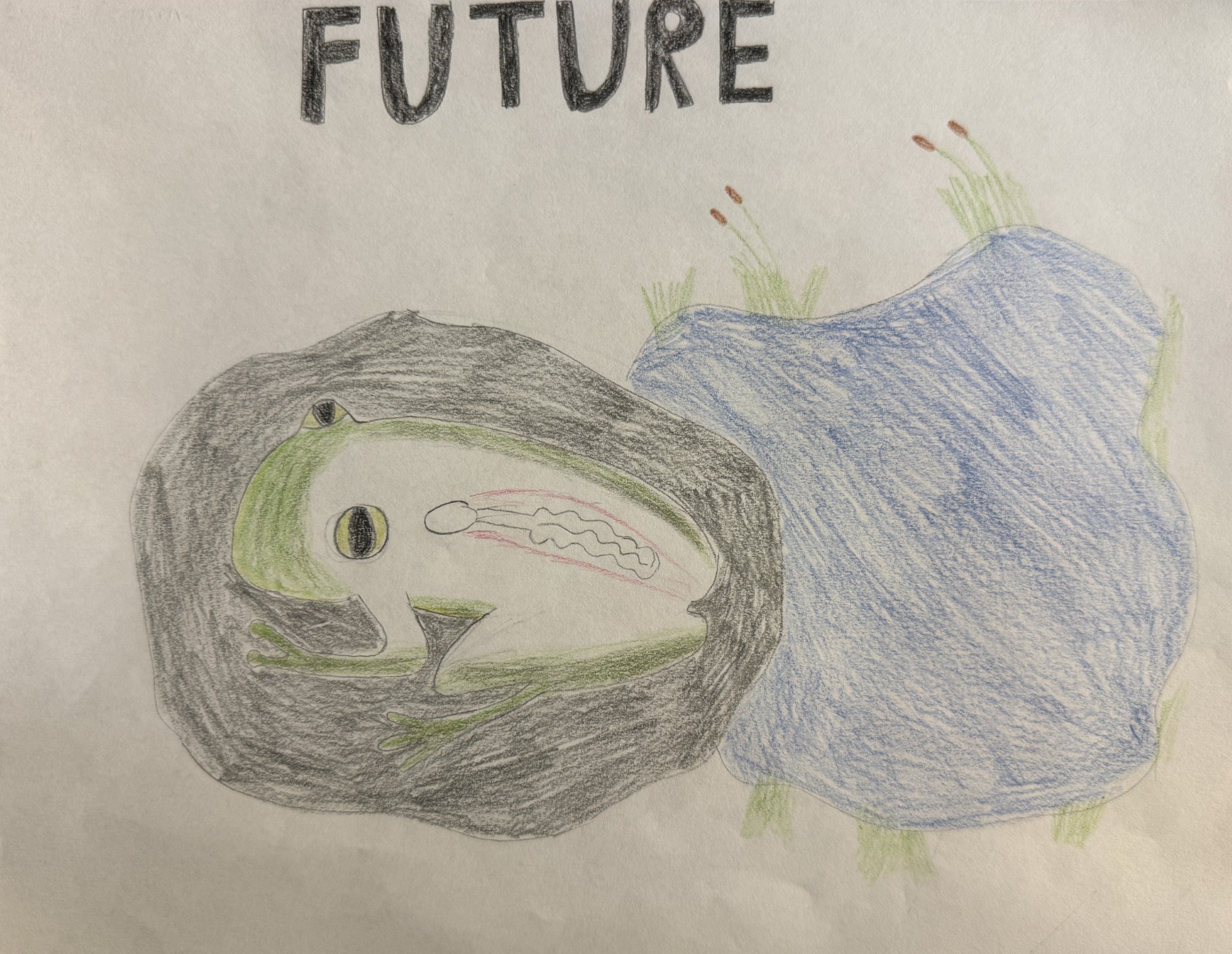 Glass frogs live in humid, tropical climates. They get their name because their skin is transparent, so you can see their organs inside. They live in the canopies and leaves of rainforests. Their diet consists of insects, spiders, mites, and other invertebrates. In the future, it is likely that rainforests and trees will become less common, so glass frogs would adapt to living on the ground. Their skin would become more transparent, or even develop color changing qualities to help them camouflage in their environment. They lay their eggs on leaves hanging above water, so they would adapt to laying their eggs in places accessible from the ground like rocks or plants. The chytrid fungus is also a major cause of death in frogs. It grows on their skin and suffocates them, so glass frogs would develop a substance on their skin that is resistant to chytrid fungus.