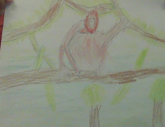 In 2000 years my orangutan is 3 to 4 ft because of food loss.Now they will eat bananas and meat.Will have tails so they can climb trees.Will have big ears to hear animals far away.Will have claws because to claw animals.That is my future animal.