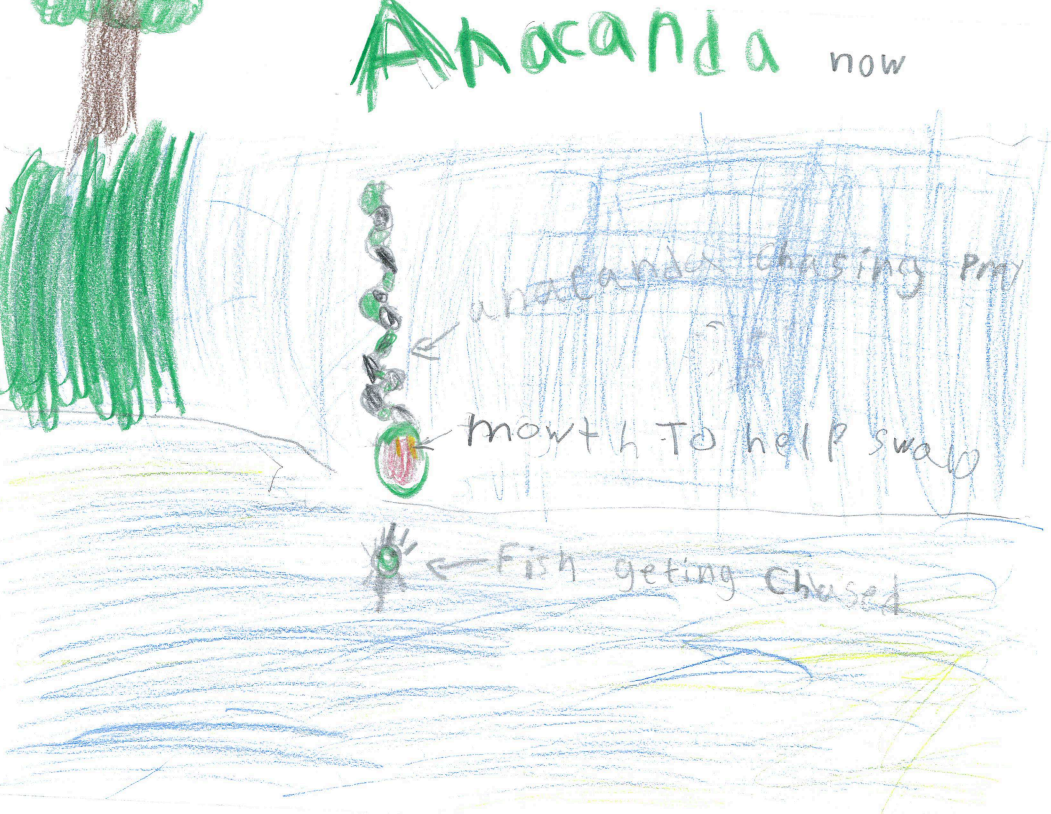 My animal is the anaconda. It lives in rivers and swamps in the rainforest. It has a long body to squeeze prey. It has a large mouth to swallow prey hole. The rainforest might change in the future.