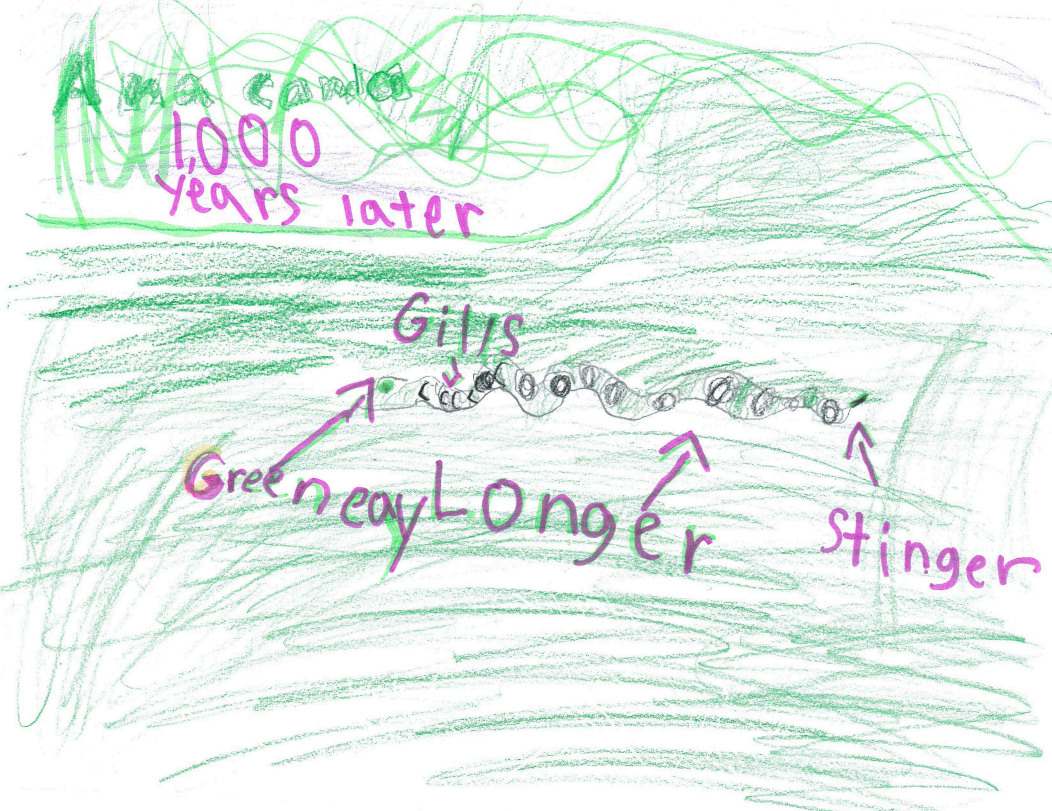 The anaconda 1,000 years later will have new body parts. It will have stronger muscles to swim faster. It will have some gills to breath in water. It will have a large mouth to swallow prey hole. It will have a lot of new body parts in its new home.