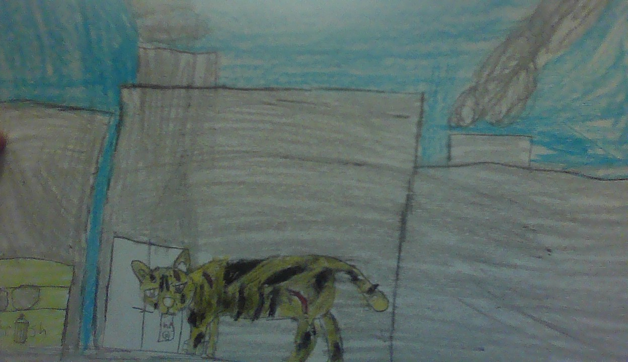 In 7621 years the ocelot will only live in texas and some africa.They eat trash and dead birds.their new biggest predator is a street dog and humans they have dark yellow and black patterns. They have very bad vision but fantastic hearing to hear predators. They eat trash.