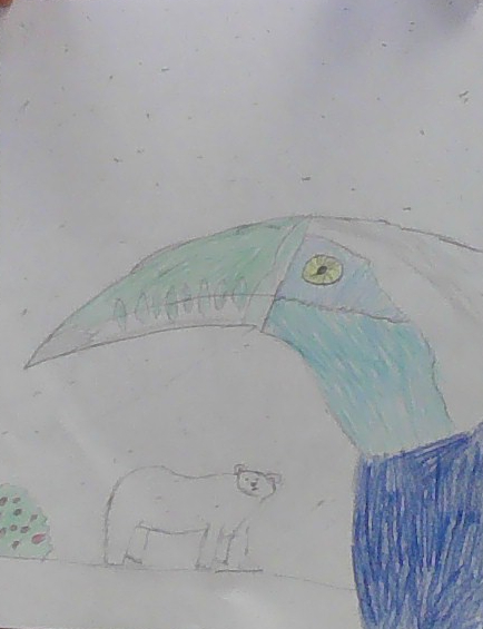 Toucans live in Antarctica because humans chopped their habitat. Polar bears, arctic foxes, eat toucans, but toucans eat berries and penguin eggs.Toucans have huge beaks.Their beaks are green and white in color.Their body color is blueish white. They have big yellow eyes to see through the snow.They have thick fur so they don’t get cold.they also have better flying skills and stronger claws.