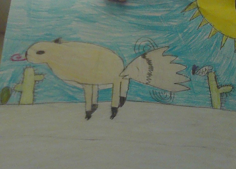 Capybaras will have to be tanish yellowish. They will have a fox-like tail. Their feet will not have to be webbed any more, instead they will have to grow horse-like feet. They’ll have tan ish yellow ish skin to hide from predators. Their tail will be good for swatting flies. Their tongue will be long and strong for sucking water out of cactus