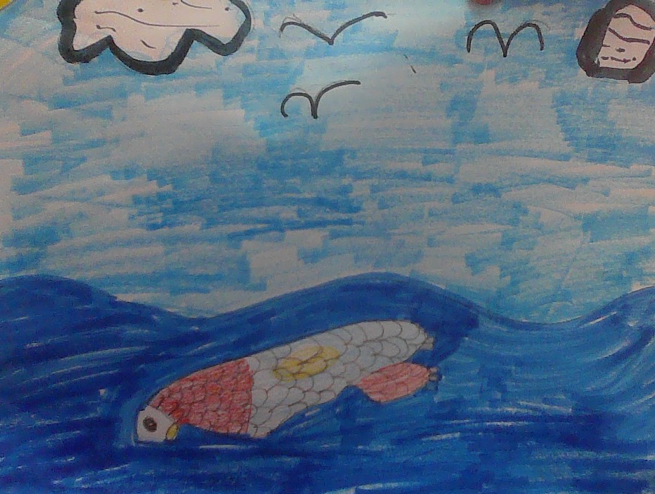 It live ocean.It is still blue, red,and yellow.
