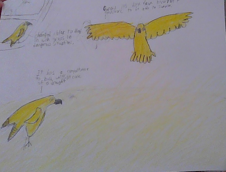 The third adaptation the Thick Billed Parrot made is it changed its color from multicolor to only yellow to help hide from predators by blending in with the grass. Those adaptations help the Thick Billed Parrot thrive in some aspects of the savannah to survive successfully.