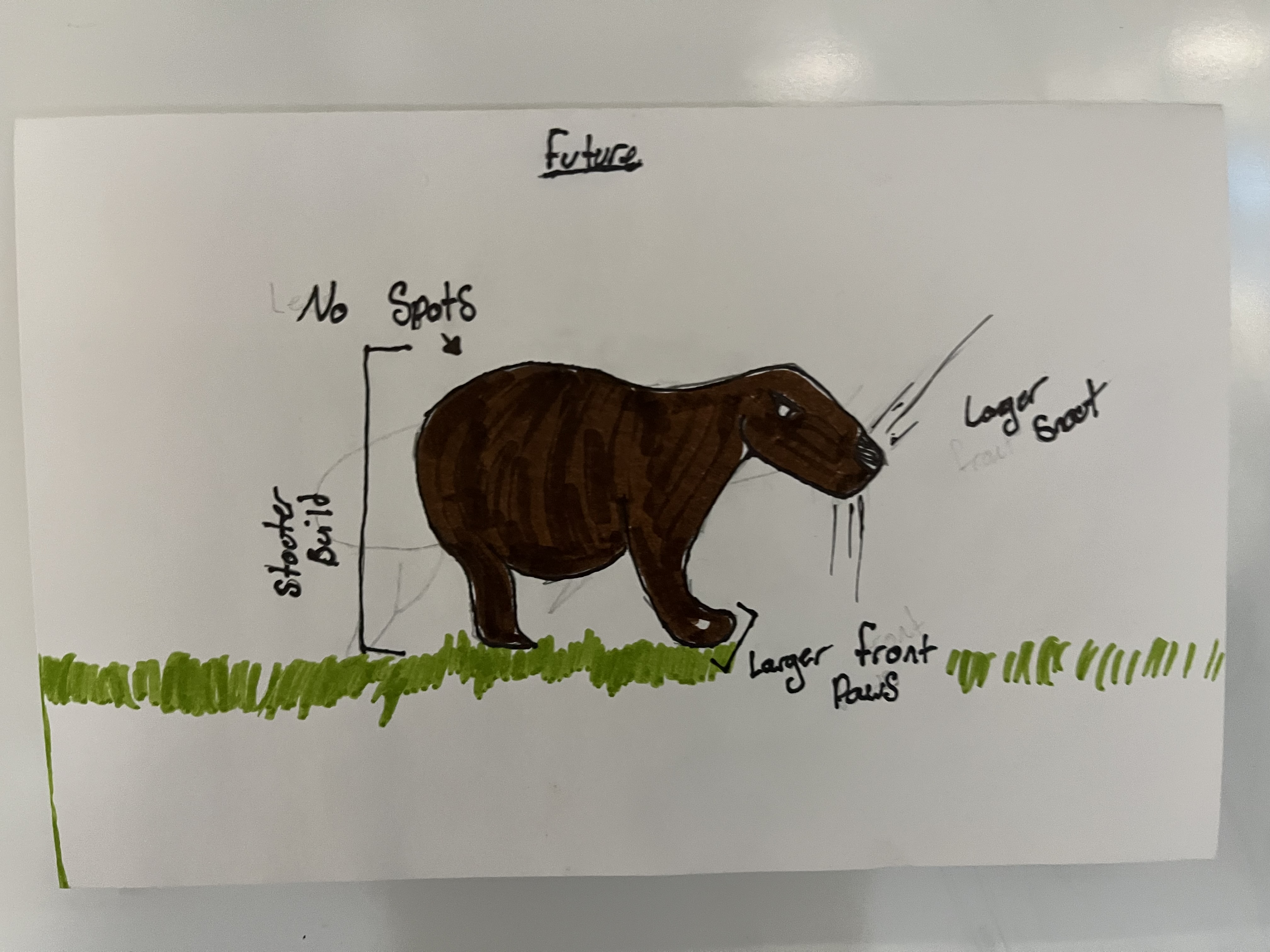 I chose to create an artistic interpretation of what the evolution of the Paca will be in the future. I chose to create a stouter build to increase the retention of water. I also chose to remove the spots as the rain forest will dry up and the color brown will blend in more. I also chose to create a larger snout as food will be harder to forage for. Finally I chose to increase the size of the front paws to help the Paca dig through the harder dirt as water becomes more scarce.
