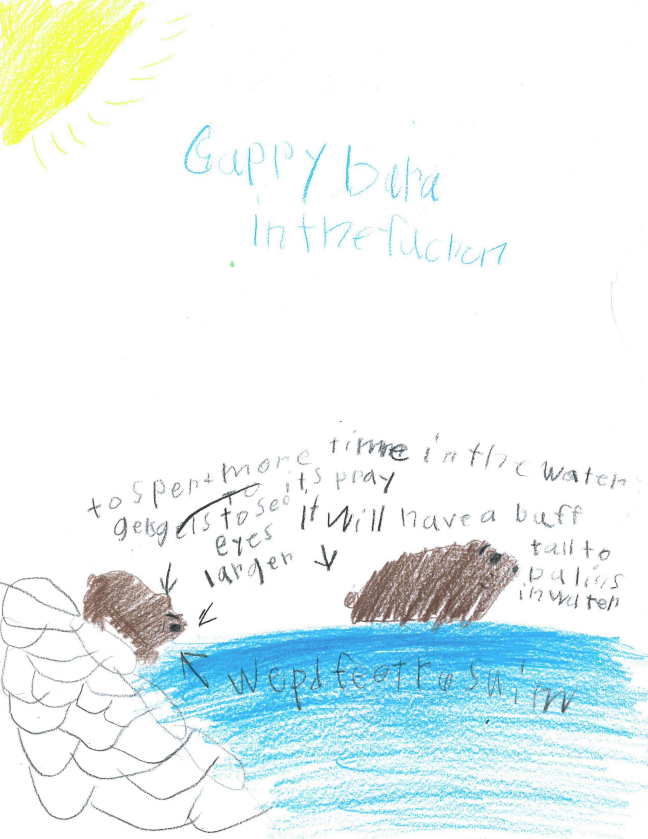 A capybara will need new adaptations to survive. In my drawing the capybara in the future it has dark skin to hide from predators. Also it has webbed feet to swim better and a puff tall to balance these help the future capybara survive.