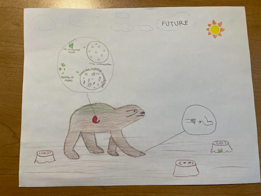 The Pygmy Three-Toed Sloth, or Bradypus Pygmaeus, the smallest of sloth species, is only found on the island of Escudo de Veraguas. Its diet mainly consists of the leaves of the red mangrove tree it resides in. Because these leaves are low in nutritional value, the Pygmy sloth's metabolism is about 40-45% slower than what would be expected for their body weight. However, as deforestation continues, the Pygmy sloth's curved toes would gradually become flatter to adjust to life on the ground. On top of that, their stomachs would develop an expanded digestive microbiome to break down a wider range of leaves and shrubs for higher nutritional intake, hence speeding up their movements.