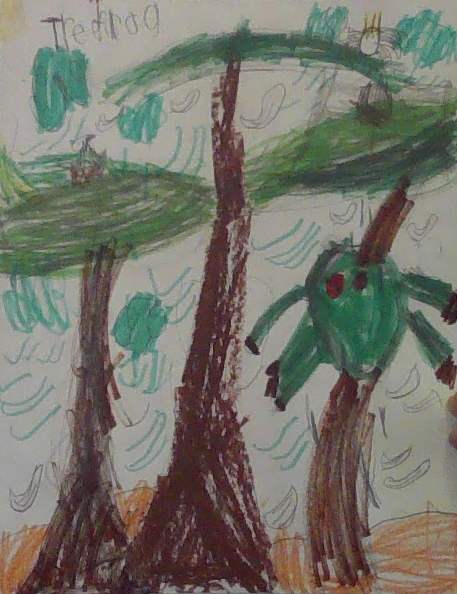 The tree frog lives in the trees it is pointed to portetit is self it ates flys . It also gets is