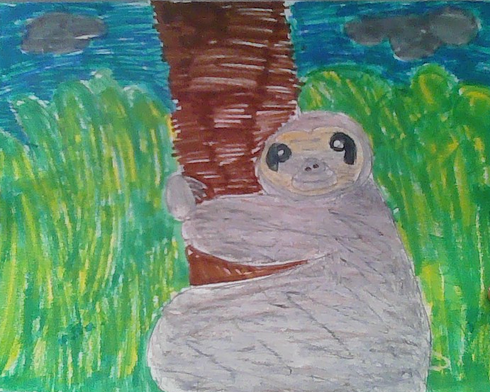 My sloth is called parascell. It lives in the ocean.It had adapted to a blue color because it had been in the water for too long and turned blue. It lost it’s fur and grew scales and small circles on it’s arms.Its predators are sharks and other big animals. It eats shrimp and small fish. It is about 12 inches long. It’s nails are shorter.