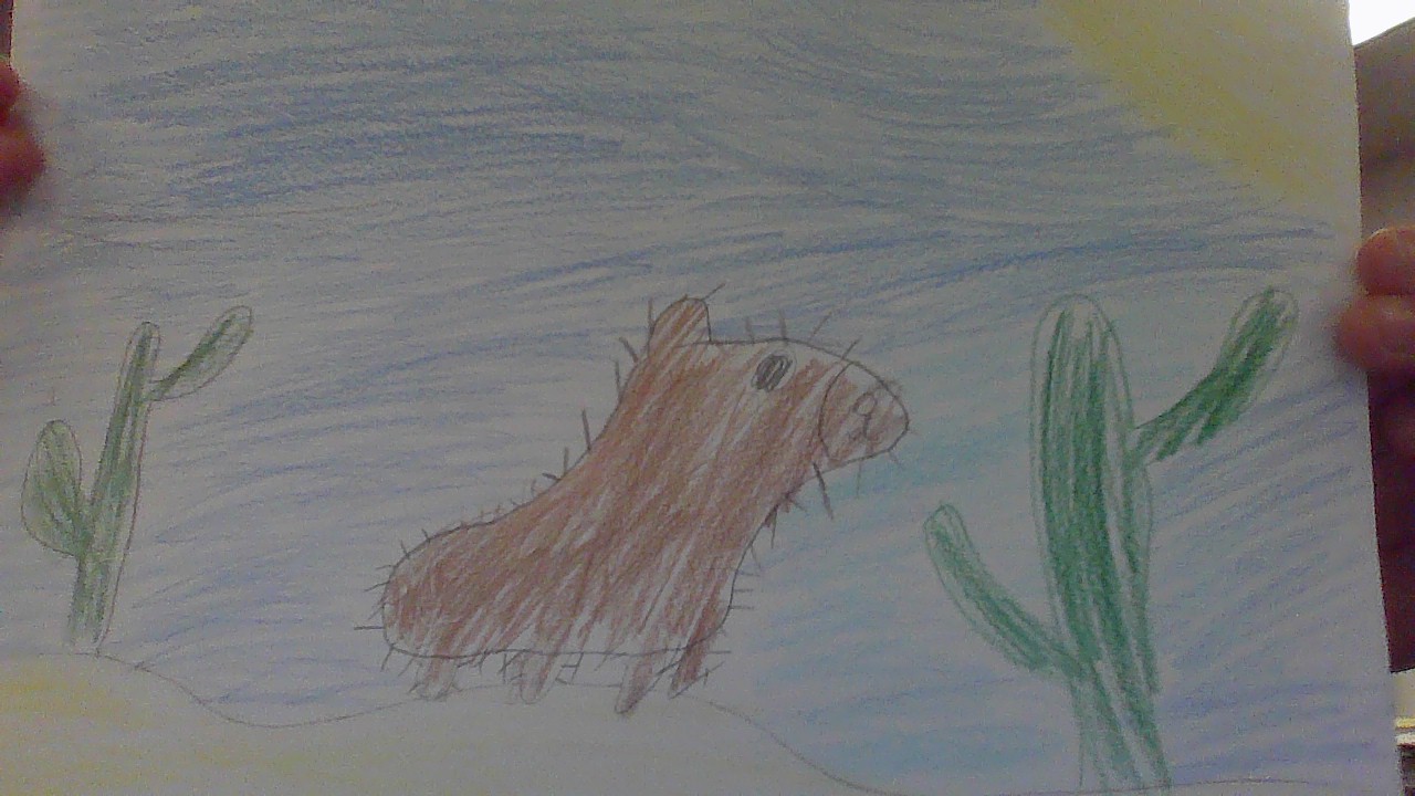It eats cactus and weighs 180 pounds. It also makes burrows in sand to sleep That is my future creature