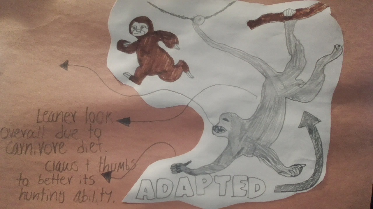 I started off with its thumbs, the current spider monkey does not have thumbs as it doesn’t need it to hunt other animals. That gets me to my other adaptation, this animal is now a carnivore, I did this because most forestry will be gone. Lastly, I gave these animals claws to capture their prey.
