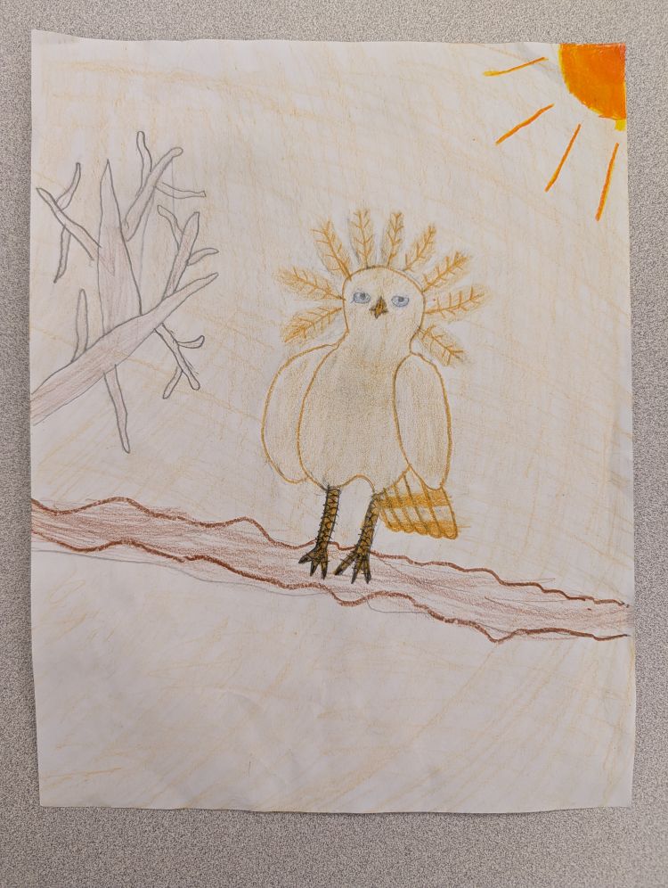 Currently the Harpy eagle has a big beak and giant claws to help them hunt bigger prey like monkeys. The Harpy eagle is quite big to make it easier for them to eat things like deer, fawns, and apes. For adaptations, they are grayish in color to camouflage them with their cloudy and shadowy surroundings. The Harpy eagle lives in the rainforest canopy, but I think their habitat will become a savanna because of wildfires caused by global warming. Over time the rainforests will dry out and make all the plants die forming a savanna. As the savanah forms, the Harpy Eagles will become a golden color to blend in with the sand. I predict that they will also get smaller beaks and talons for hunting lizards, as well as the feathers on their head getting bigger for better hearing so they can hear even the footsteps of lizards.
