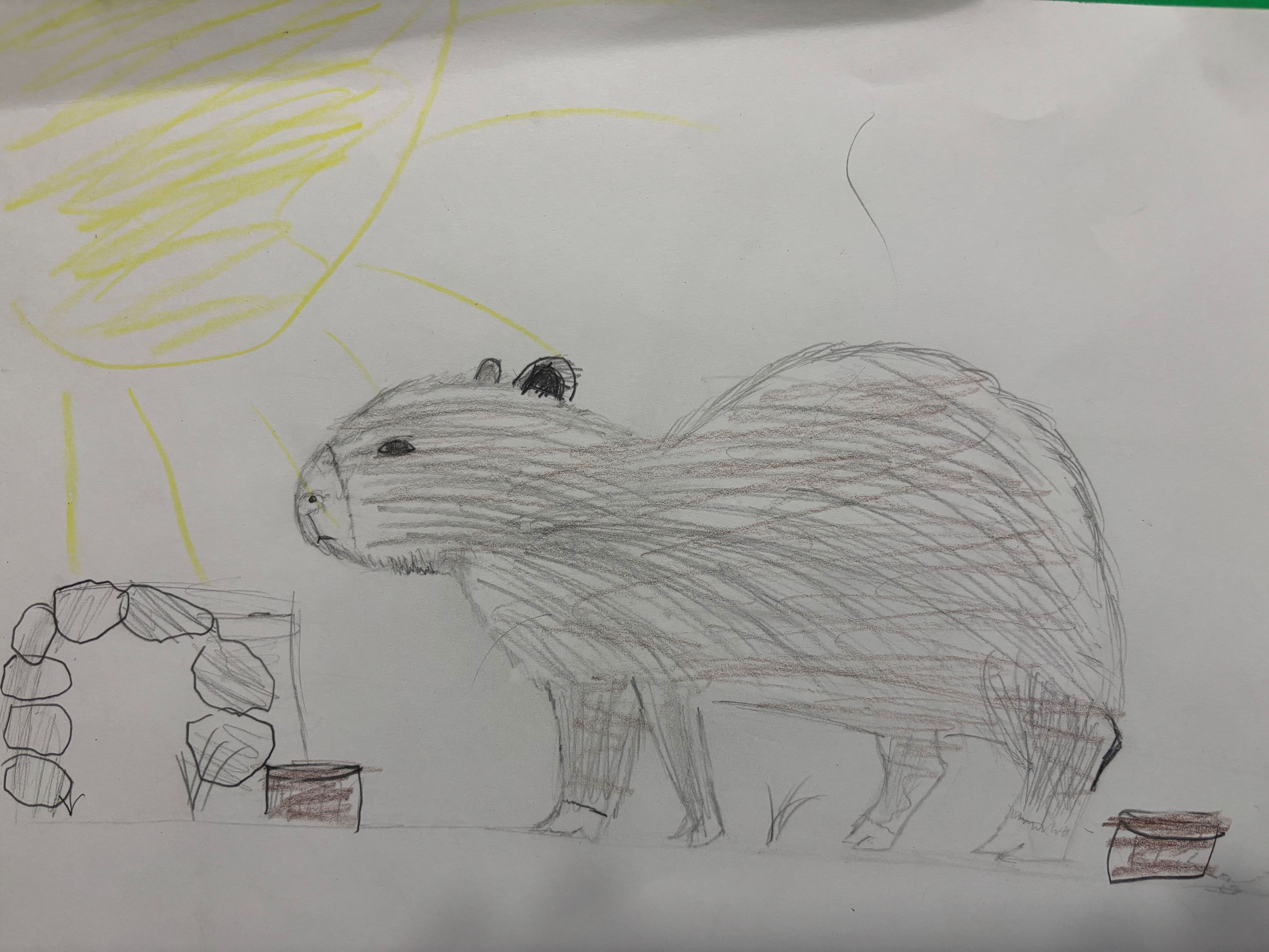 In the future, the rainforest might become hotter and drier. There may be less rain and fewer rivers. The capybara will need new adaptations to survive. Its ears may grow bigger to help release heat and keep its body cool. It might grow a hump on its back to store water. Its fur could turn light brown or gray so it can blend in with dry rocks and dusty land.