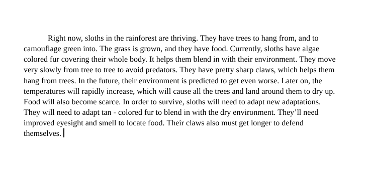 Bradypus Variegatus Sloth in it's present environment and in it's future environment.