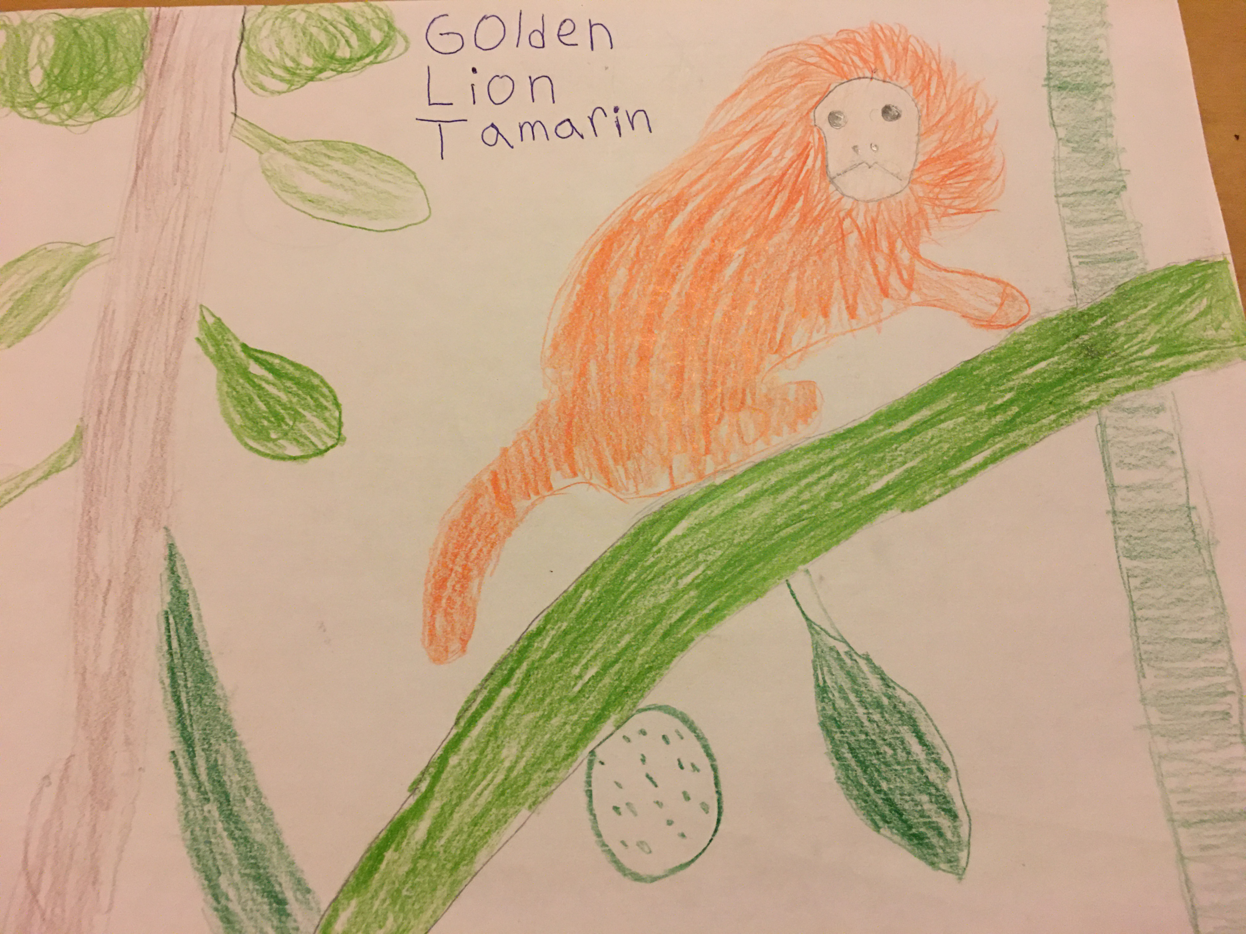 In the future I think that there will be very little tree cover and the temperature will increase so the Golden Lion Tamarin will have less fur. I also think it will adapt so it can live on the ground as well as trees, so the Golden Lion Tamarin will grow claws, have less fur and its fur coat color would change to a brown so the Golden Lion Tamarin could camaflouge.