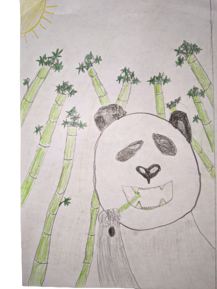 This is a drawing of a panda now and one of it in the future. It shows how it has changed and adapted to the new enviornment